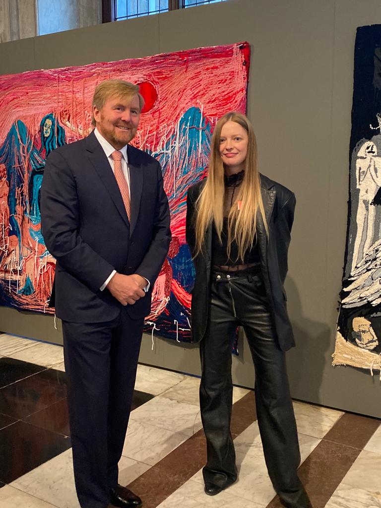 Her subject is not anatomy. It is empathy. The question she returns to, in tapestry after tapestry and painting after painting, is: what does it feel like to live in a body that the world has an opinion about?